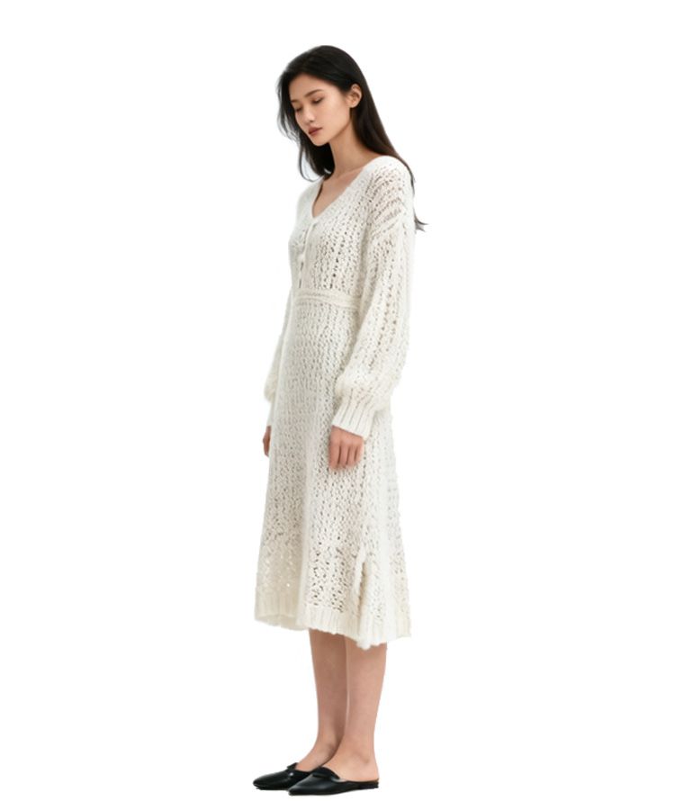 V領針織連衣裙